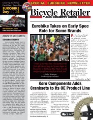 Helmet articles in Bicycle Retailer and Industry News Summary: Articles from the leading bicycle retail trade publication, used with permission from the publishers. Bicycle Retailer and Industry News. Vol 4, Number 7 May 1, 1995. U.S. Senator Gives Snell A Big Boost. By Steve Frothingham and Mark Sani. bicycle industry retailer news - Search Bicycle Retailer and Industry News. Upcoming Events. CABDA Midwest-CANCELLED. (BRAIN) — In an industry of hard workers, Mike Kalmbach was among the most industrious. Starting in retail at age 13 — he attended the week-long Schwinn retail school three years later — Kalmbach later... Bicycle Statistical Data: Usage, Productions and Sales Source: Bicycle Retailer & Industry News Directory, from Cycle Press, European Bicycle Manufacturers Association, Japan Bicycle Promotion Institute, Bike Europe, and Bicycle Retailer & Industry News. United States Bicycle Market, 1991-2000. Mobile mechanics: a sustainable business for the bicycle retailer? CyclingIndustry.News asks the experts… When PON's bike division, the Accell Group and other goliaths in the cycling world are taking a keen interest in mobile mechanics maybe it's time to take seriously what until now has operated in small numbers in the UK market.