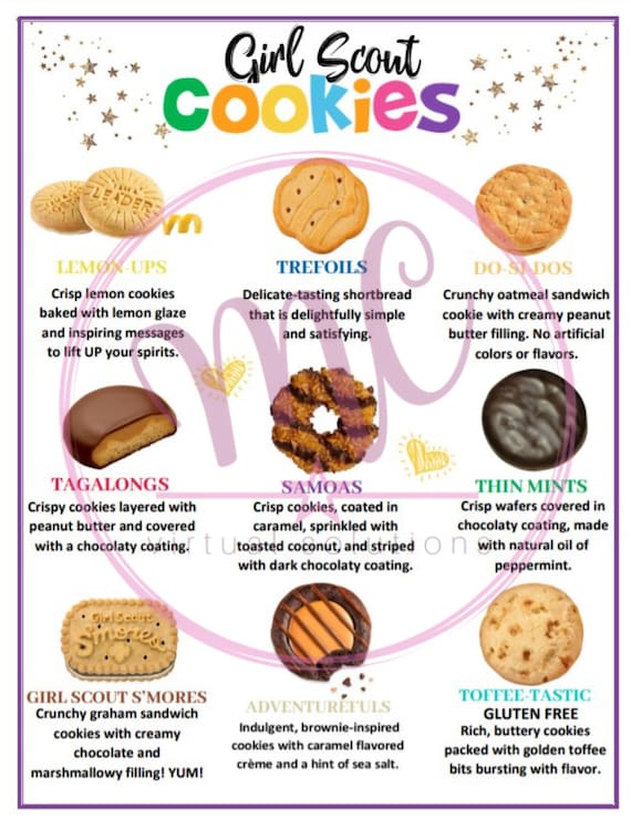 About Girl Scout Cookies Enjoy Girl Scout Cookies yourself, give some to a friend, or donate to a worthy cause—every bite counts! Find Cookies! Tips for Getting Your Troop Ready for Cookie Season. As you get set to launch your Cookie Program on January 20, there are some things you can check on now to make sure things are good to go! › en › cookiesBuy Cookies - Girl Scouts Plus, all proceeds from Girl Scout Cookies stay local to help fund life-changing, girl-led programs, experiences, and learning all year long in your area. Traditional Girl Scout Cookie flavors cost $5/package, and the gluten-free flavor costs $6/package. PDF 2022 Girl Scout Cookies Rich, buttery cookies with sweet, crunchy toffee bits. Approximately 14 cookies per 6.7 oz. pkg. toffee-tastic® GLUTEN-FREE do-si-dos® Oatmeal sandwich cookies with peanut butter filling. Approximately 20 cookies per 8 oz. pkg. girl scout s'mores® Graham sandwich cookies with chocolate and marshmallowy filling. Approximately 16 cookies per 8.5 How to Buy Cookies | Girl Scouts Every box of cookies you buy from your neighborhood Girl Scout stays local. Proceeds from your purchase help fund incredible adventures like camping and bold ...