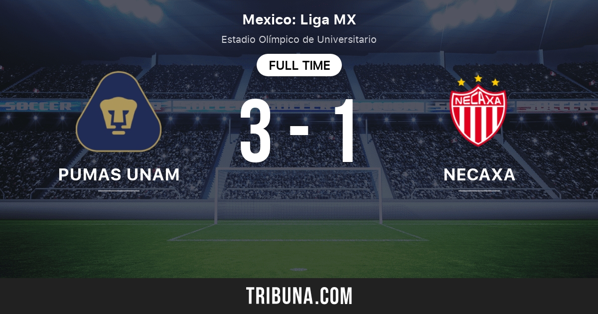 PRONÓSTICO PUMAS VS NECAXA Y PROBABILIDADES (19/3) | Balón ... De acuerdo con información del portal Vivo el Futbol, Pumas y Necaxa se han medido en un total de 43 compromisos desde el Invierno del 96 a la fecha; es decir, en los últimos 26 años. En esta cantidad de tiempo, los que partirán como locales suman 15 victorias, 11 empates y 17 descalabros, así como 58 goles a favor y 66 anotaciones en contra.